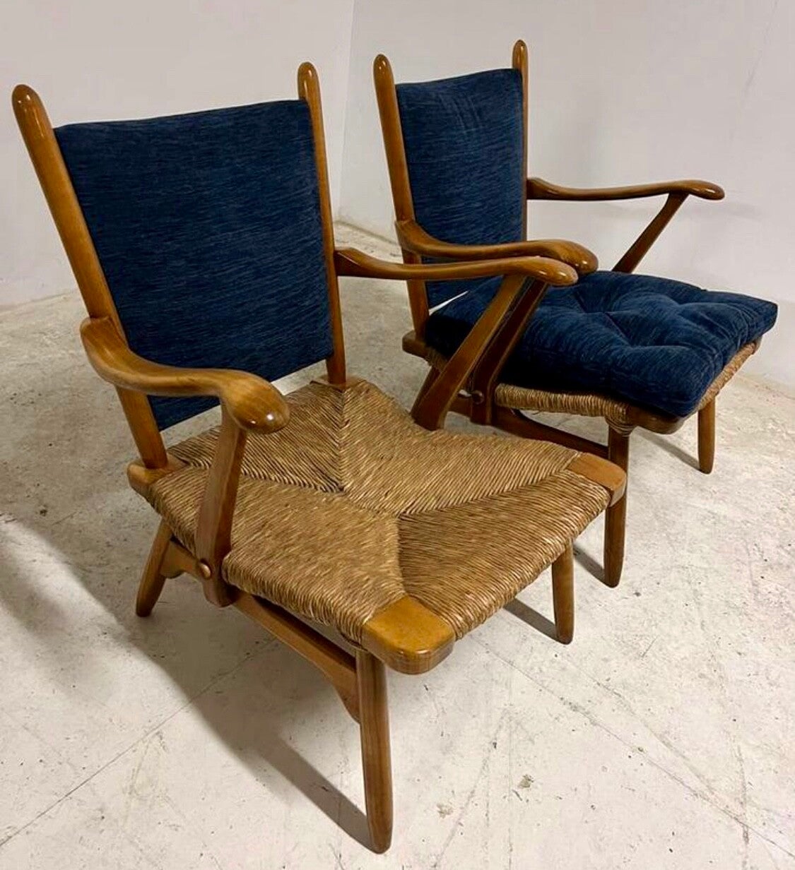 De Ster Gelderland set of lounge chairs with rush seats in perfect condition.