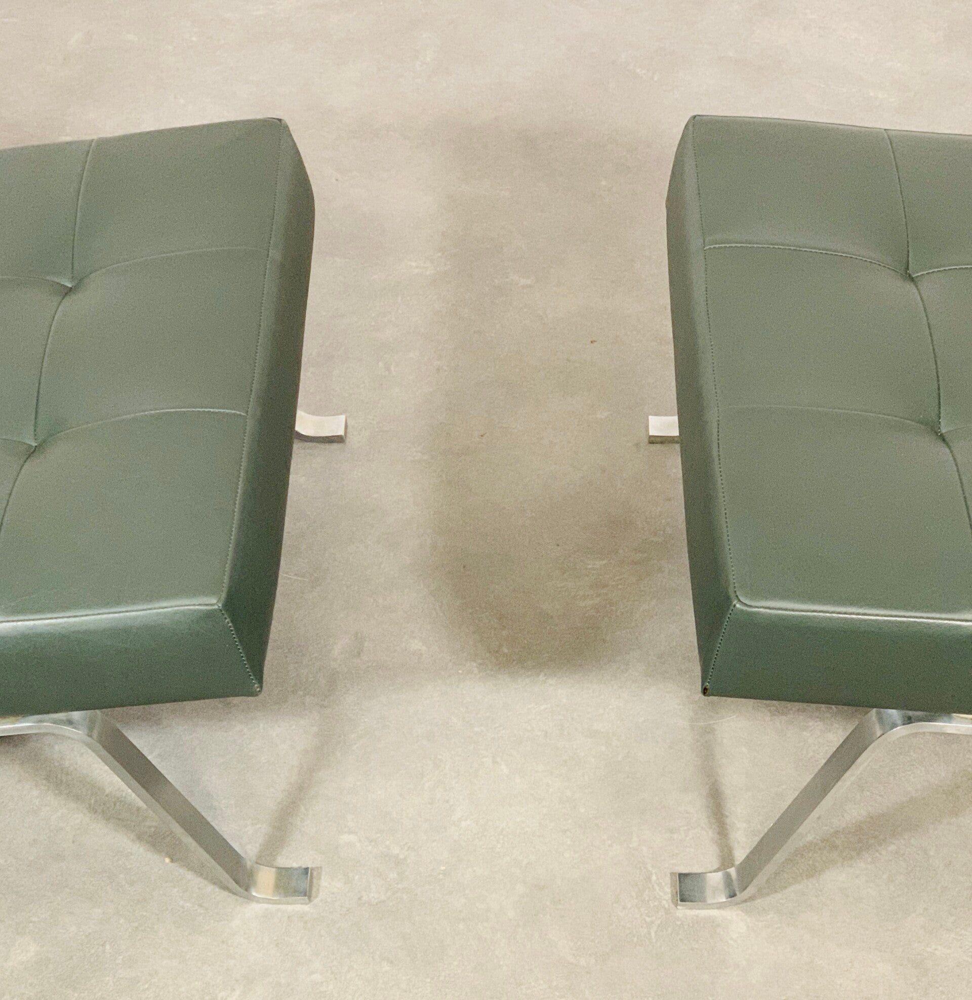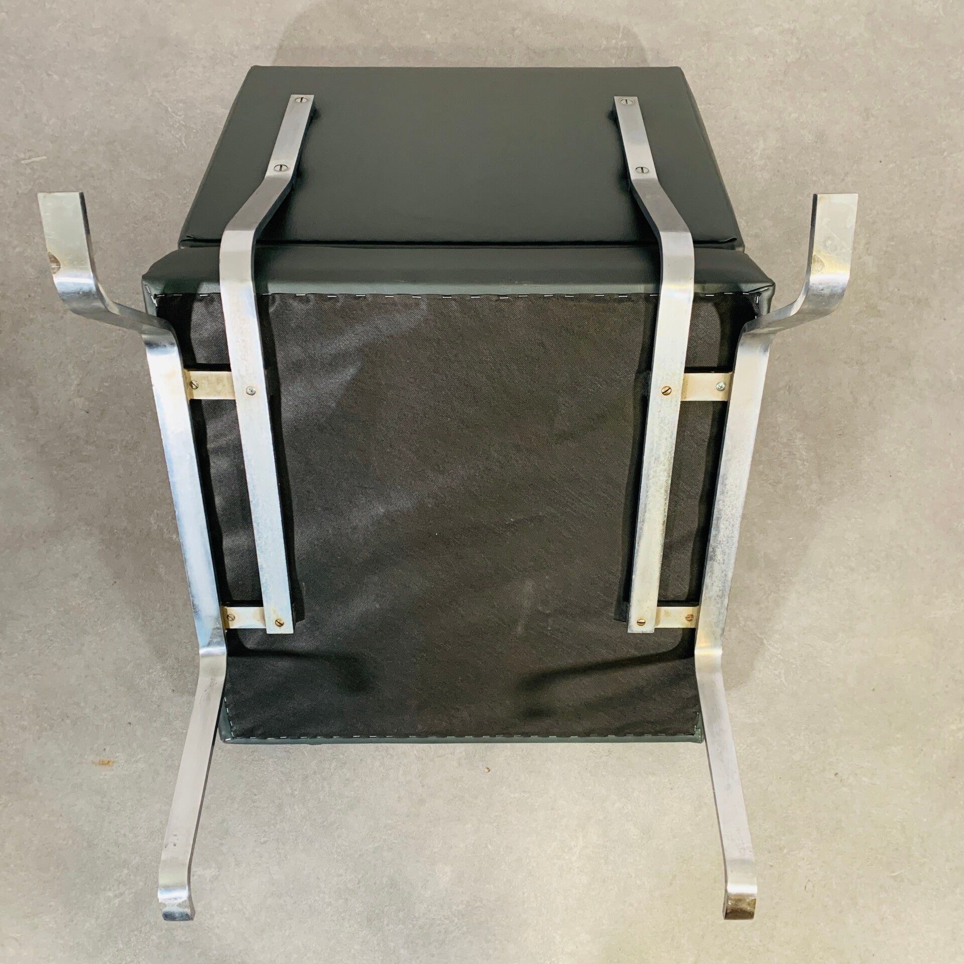 This lounge chair set has solid brushed steel legs and black faux leather. It’s a combination of the Barcelona chair by Ludwig Mies van der Rohe and the PK22 from Poul Kjaerholm.