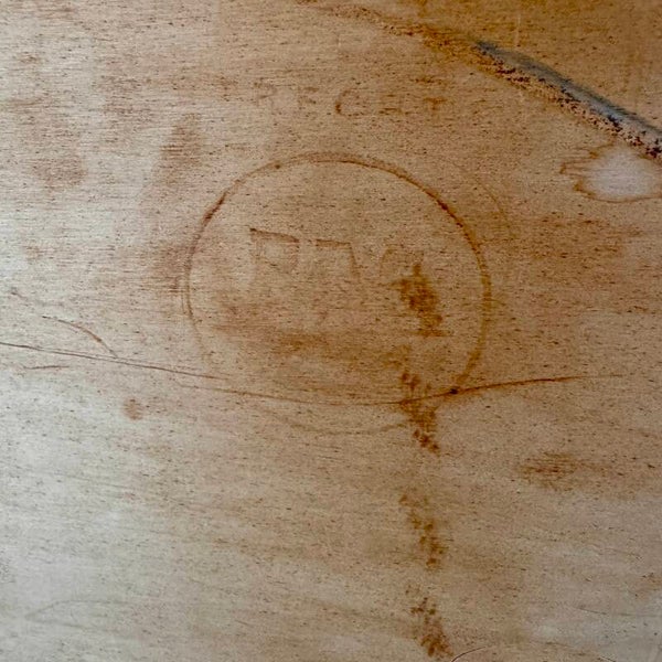 The cabinet has a birch veneer finish, stands on the characteristic plywood loop legs and has the well-known anti-dust drawers. Good condition. With 1 original key (shaft damaged).