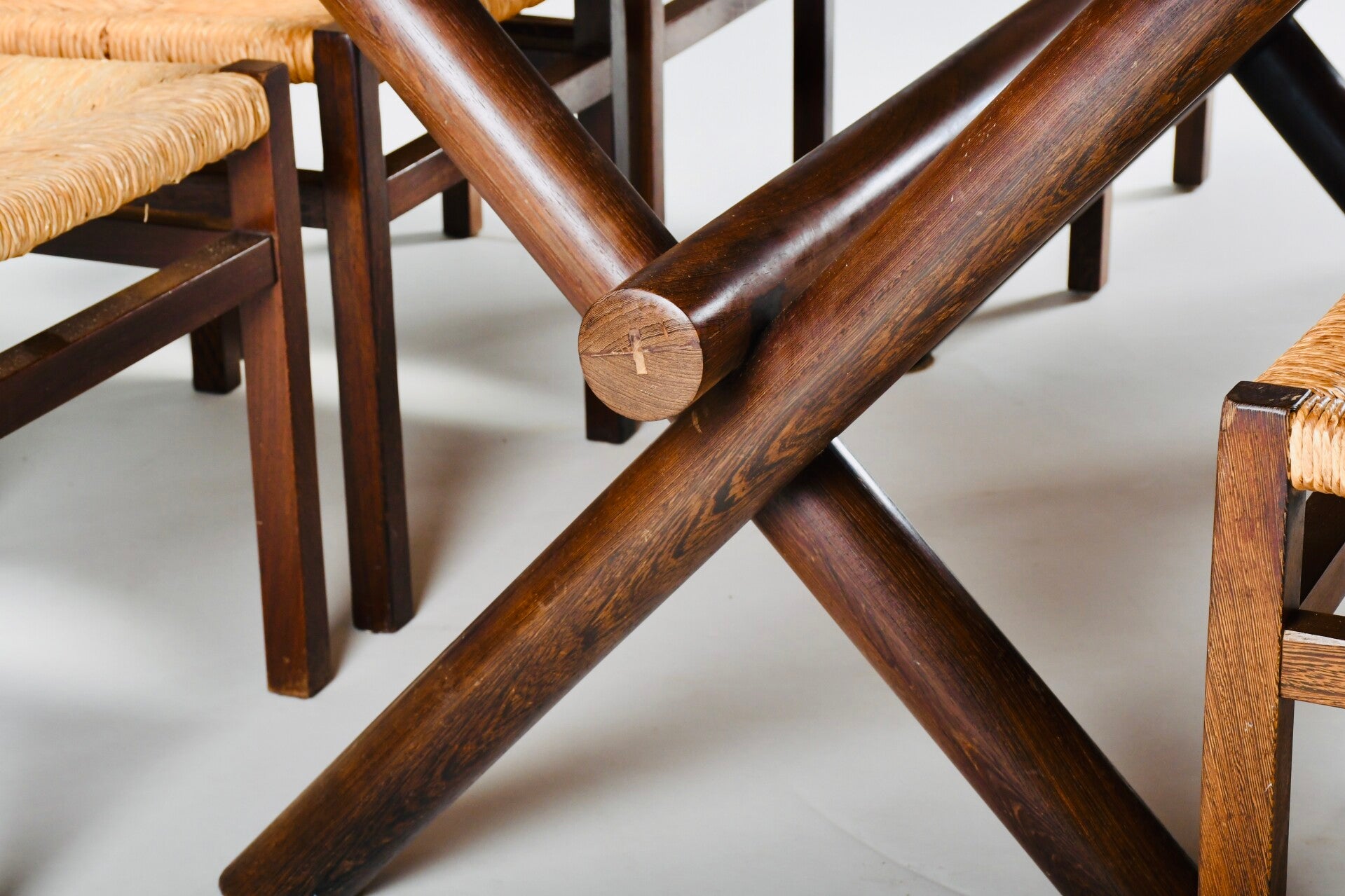 Table with beautiful solid wengé round pole base.